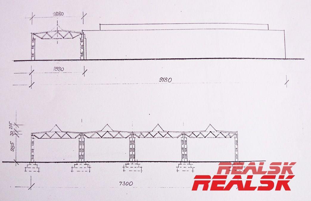 Hlavná časť haly je zložená z dvoch spojených lodí s výmerou cca 4400m2 a je možné kúpiť ich samostatne. Vjazd do hál je cez veľké plechové brány. Vedľa hál je administratívna budova ktorú je potrebné rekonštruovať.