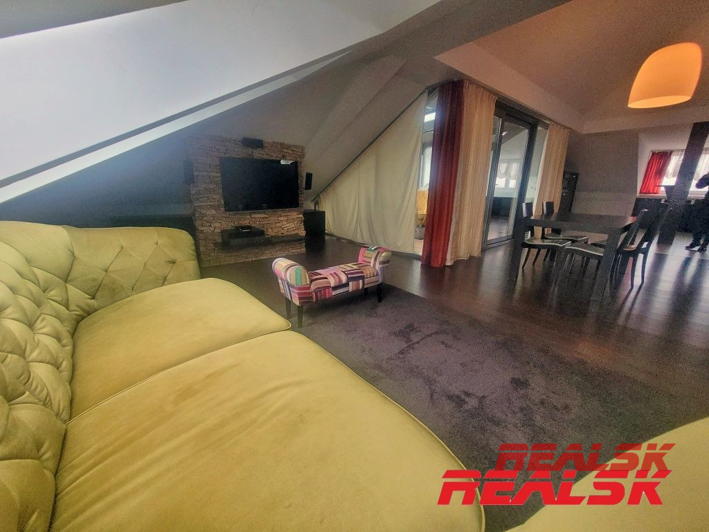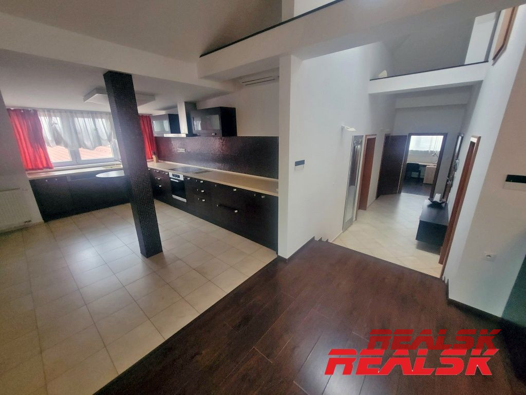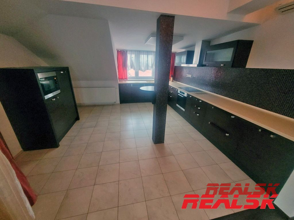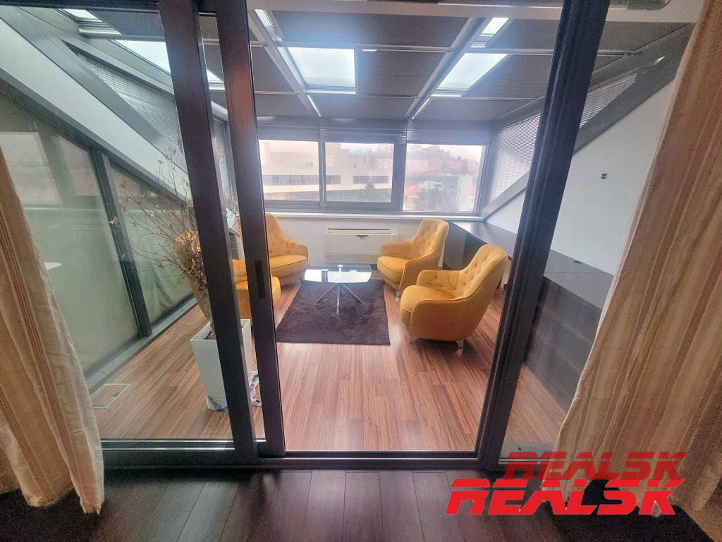 Ponúkame Vám na prenájom jedinečný luxusný 4-izbový byt v absolútnom centre Nitry. Byt má celkovú plochu 199,93 m2. Má tri samostatné spálne, z toho v dvoch sa nachádza súkromná kúpeľňa a WC. Veľká obývacia izba je spojená s jedálňou a kuchyňou. V kuchyni je k dispozícii komora tvoriaca samostatnú miestnosť. Obývacia miestnosť s kuchyňou tvoria spolu otvorený priestor o výmere cca 62 m2. Z tohto priestoru je prístup na krytú terasu o výmere 15 m2, z ktorej je nádherný výhľad na Svätoplukovo námestie, Nitriansky hrad, či Zobor. Na chodbe sa nachádza ďalšie WC, šatník a elektronický vrátnik. V každej miestnosti je klimatizácia, byt je kompletne zariadený nábytkom na mieru a spotrebičmi. Po dohode možnosť doplniť zariadenie. Byt sa nachádza na 4. poschodí s výťahom v polyfunkčnej budove. Je to jediný byt v budove, ktorý pokrýva celé podkrovné podlažie - žiadni susedia - absolútne súkromie. K bytu je 1x parkovacie miesto v súkromnom dvore.