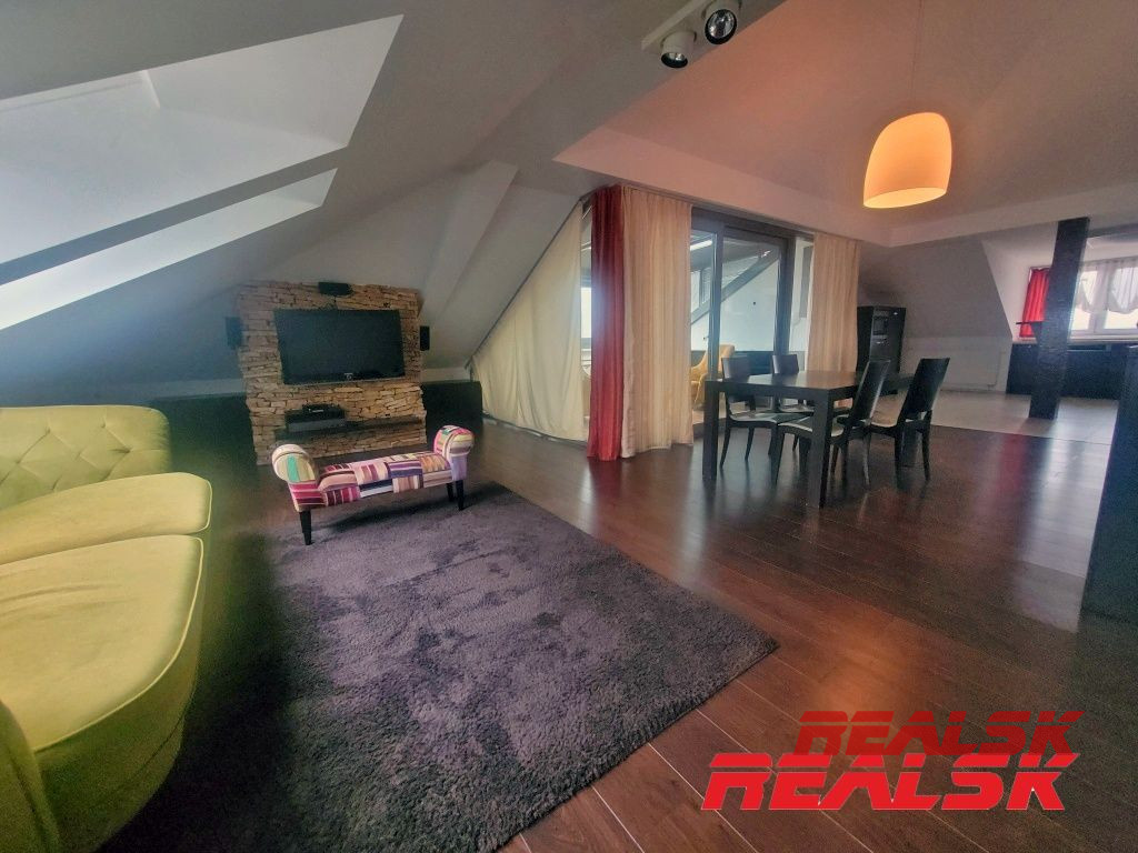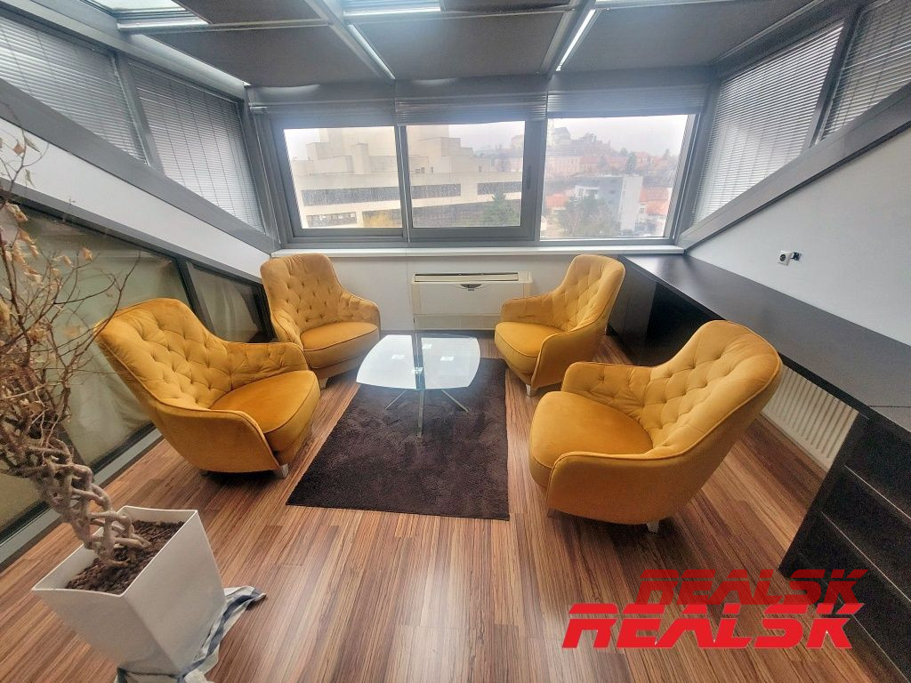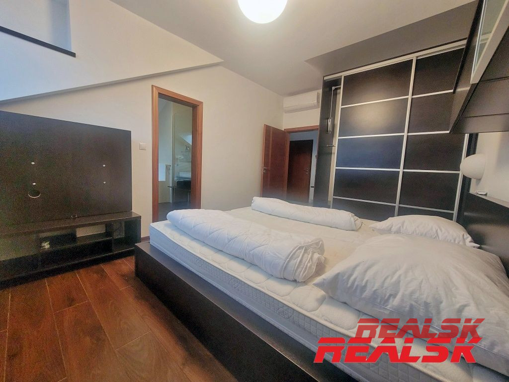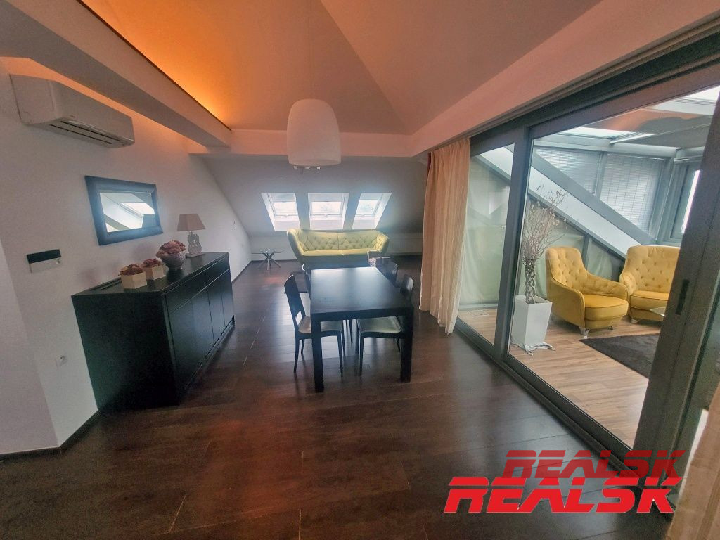 Ponúkame Vám na prenájom jedinečný luxusný 4-izbový byt v absolútnom centre Nitry. Byt má celkovú plochu 199,93 m2. Má tri samostatné spálne, z toho v dvoch sa nachádza súkromná kúpeľňa a WC. Veľká obývacia izba je spojená s jedálňou a kuchyňou. V kuchyni je k dispozícii komora tvoriaca samostatnú miestnosť. Obývacia miestnosť s kuchyňou tvoria spolu otvorený priestor o výmere cca 62 m2. Z tohto priestoru je prístup na krytú terasu o výmere 15 m2, z ktorej je nádherný výhľad na Svätoplukovo námestie, Nitriansky hrad, či Zobor. Na chodbe sa nachádza ďalšie WC, šatník a elektronický vrátnik. V každej miestnosti je klimatizácia, byt je kompletne zariadený nábytkom na mieru a spotrebičmi. Po dohode možnosť doplniť zariadenie. Byt sa nachádza na 4. poschodí s výťahom v polyfunkčnej budove. Je to jediný byt v budove, ktorý pokrýva celé podkrovné podlažie - žiadni susedia - absolútne súkromie. K bytu je 1x parkovacie miesto v súkromnom dvore.