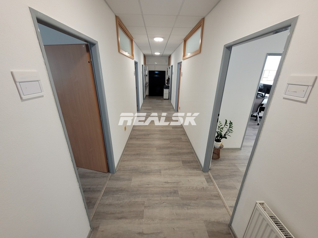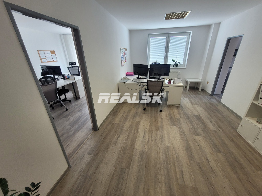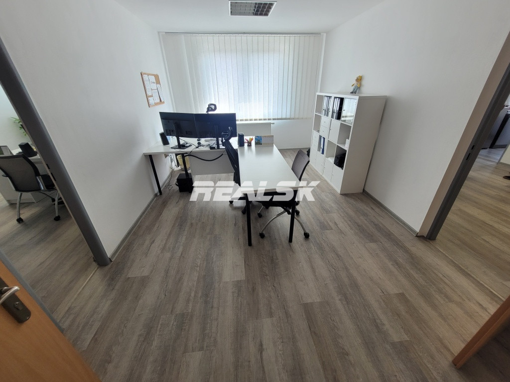 Ponúkame Vám na prenájom kancelárske priestory, ktoré tvoria samostatnú časť budovy s vlastným vstupom z parkoviska. Priestory sa nachádzajú na 2. NP a ich celková plocha je 151,7 m2, na ktorých sa nachádza 6 kancelárií, chodba, kuchynka a WC. Každá kancelária má cca 18 m2. Niektoré sú priechodné, no dispozíciu je po dohode možné prispôsobiť. K dispozícii je parkovisko bezprostredne pred budovou. Priestory sa nachádzajú v súkromnom areáli na Bratislavskej ul., majú výborný prístup z diaľnice R1, ako aj z centra mesta.